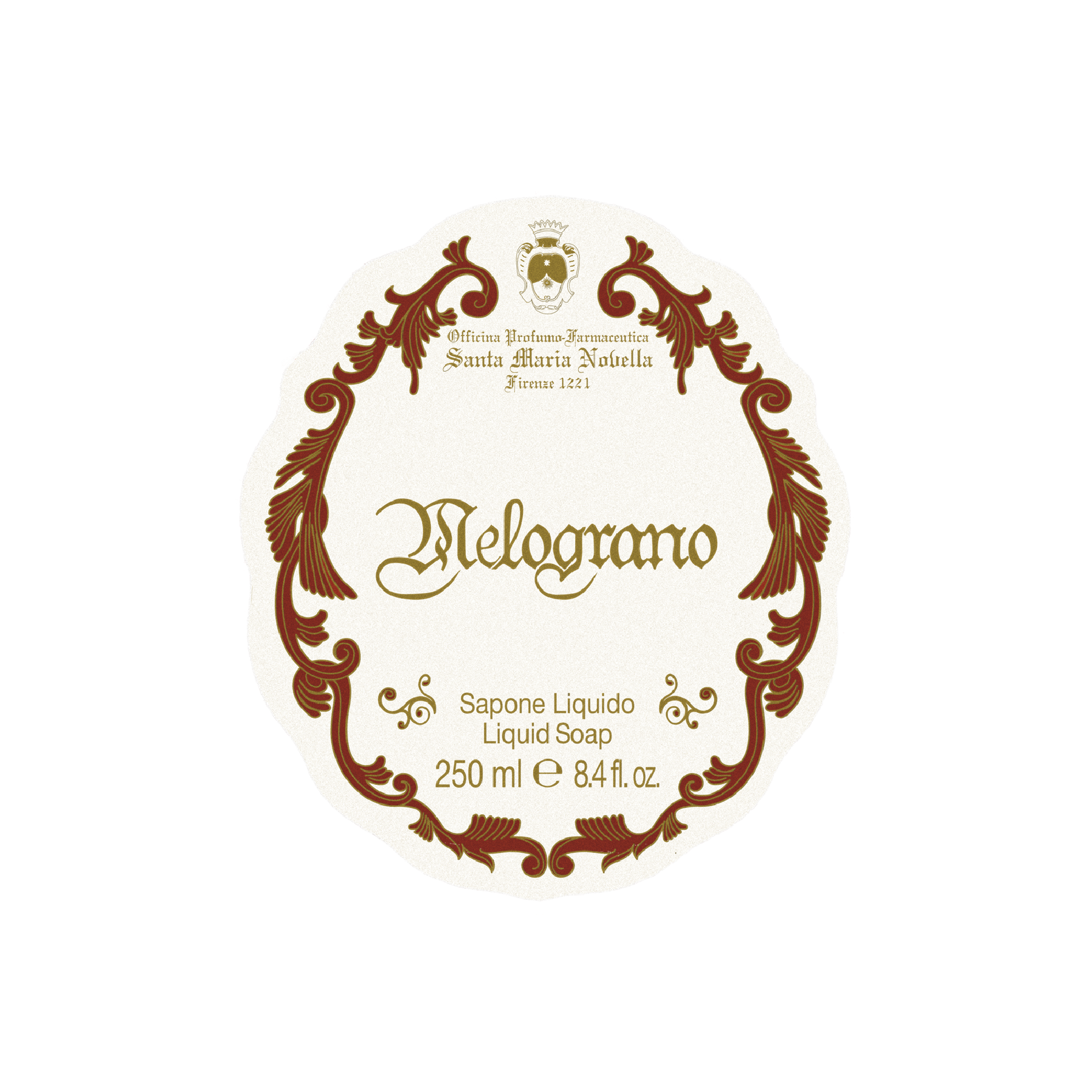 Melograno: the distinctive essence of Officina Profumo-Farmaceutica di Santa Maria Novella. The liquid soap is formulated with surfactants of vegetable origin and enriched with natural saponins. The formula is completed with calendula extract, chosen for its softening properties.